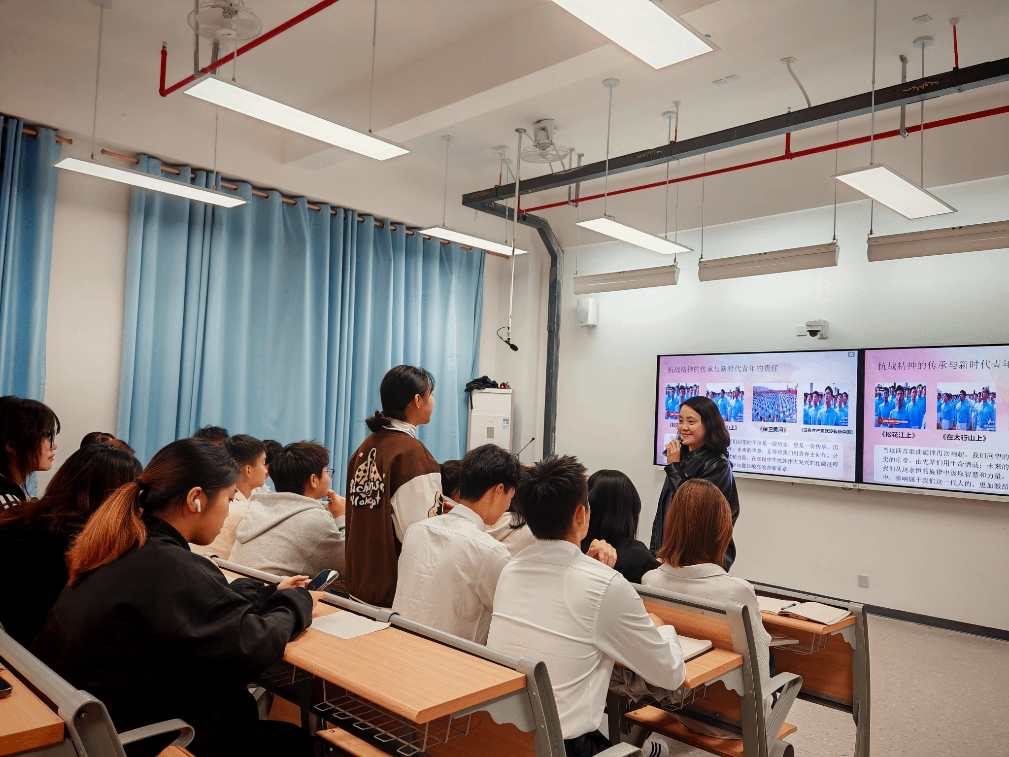 学习领会党的二十届四中全会精神,还要从历史的深处汲取精神的力量。林珍老师通过听音识曲,引导学生读懂《松花江上》的悲怆旋律、《在太行山上》的激昂号角、《没有共产党就没有新中国》的深情传唱和《保卫黄河》的雄浑乐章。四首经典之歌串联起烽火岁月的壮阔史诗,让学生明白歌曲中蕴藏着天下兴亡、匹夫有责的爱国情怀,视死如归、宁死不屈的民族气节,不畏强暴、血战到底的英雄气概和百折不挠、坚忍不拔的必胜信念。这些在血与火中铸就的团结精神和民族凝聚力,是我们在实现中国特色社会主义现代化进程中破解难题、实现宏伟目标的宝贵精神财富。