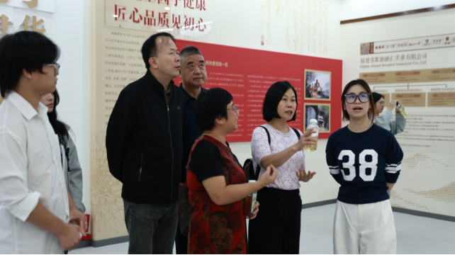 11月7日下午,服务团前往福建建菊生态农业发展有限公司进行调研。在公司总经理徐心岚的陪同下,师生参观了公司总部及生产基地。据徐总介绍,该公司成立于2024年,系福建省聚源融汇实业集团旗下子公司,依托明溪优越的生态资源,全力构建以“建菊”“福九味”为核心的道地药食同源生态链。她希望服务团在品牌传播、营销模式创新和市场渠道拓展等方面提供支持,共同推动药食同源产业发展,助力乡村振兴。
