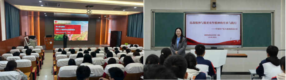 我校马克思主义学院精心组建了“学习贯彻党的二十届四中全会精神”“中国共产党人的精神谱系”“弘扬伟大抗战精神”等三支理论宣讲队,聚焦大中小学思政一体化联盟校、二级学院师生、团学干部、学生社团、高素质新型职业农民班学员等群体打造模块化、配送式的精准宣讲服务,累计开展党的二十届四中全会精神、中国共产党人精神谱系等主题宣讲45场,覆盖3000余人次。
