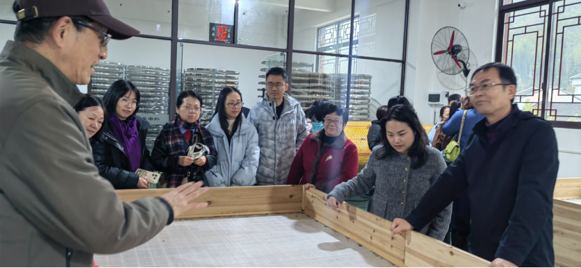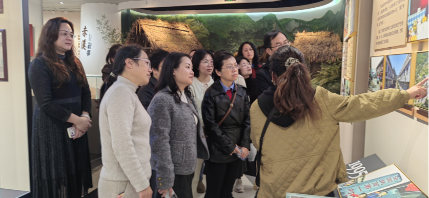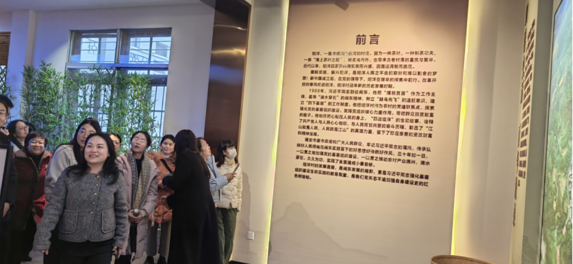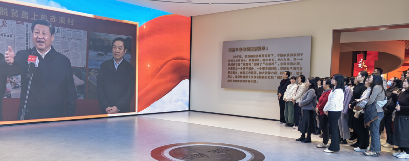 1月26日下午,实践队参观了杜赢的茶叶加工标准化厂房,了解茶叶加工流程,聆听赤溪人脱贫致富故事,感受赤溪人的茶文化和茶情怀。随后,实践队来到了中国扶贫赤溪展示馆,在讲解员的引导下,教师们循着赤溪村的脱贫足迹,通过图文展板、实物展陈、艺术装置与视频互动等丰富形式,全方位了解了这个曾经“山高路险鸟迹稀”的特困畲村,如何从1984年一封反映贫困状况的来信出发,在党和国家的关怀下,经历了“输血—换血—造血”“三个十年”摆脱贫困的过程,最终走出一条“旅游富村、农业强村、文化立村、生态美村”的增收致富路。展陈中,一张张对比鲜明的老照片、一件件承载岁月的旧实物、一个个感人至深的扶贫故事,让教师们深受触动。
