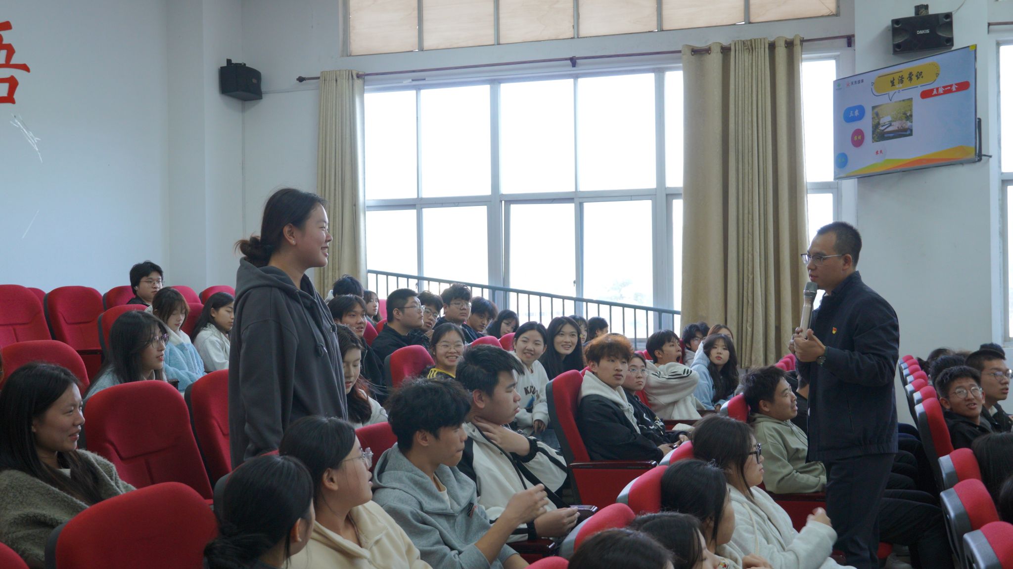 互动交流环节气氛热烈,同学们围绕就业趋势、升学路径规划、职场能力构建等问题踊跃提问。两位校友结合企业招聘需求与行业发展动态,耐心细致地一一解答,为学弟学妹们提供了针对性建议。