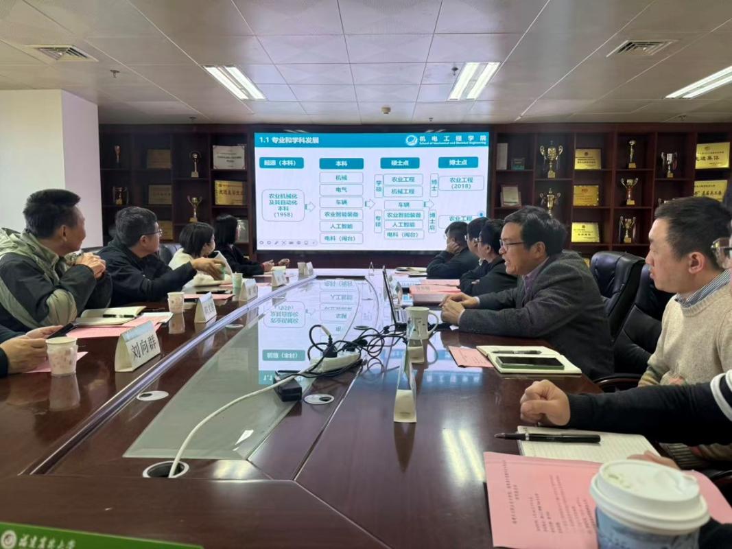叶大鹏院长代表机电工程学院对来访团队表示热烈欢迎,并详细介绍了学院农业工程学科的发展历程、师资力量、科研成果及平台建设情况,重点阐述了学院在农业信息感知、现代农业装备研发等领域的学科优势,以及在高层次人才培养、科研成果转化方面的实践经验。