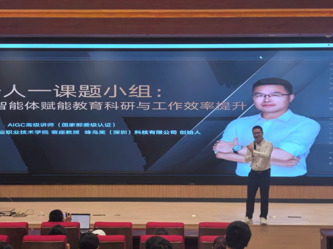 2025年10月30日,现代农业技术学院在动科学院报告厅举办“AI智能体赋能教育科研与工作效率提升”专题培训。本次培训特邀AI人工智能高级训练师肖常辉担任主讲,副校长侯志宏、学院全体教职工及部分学生代表共计百余人参与。