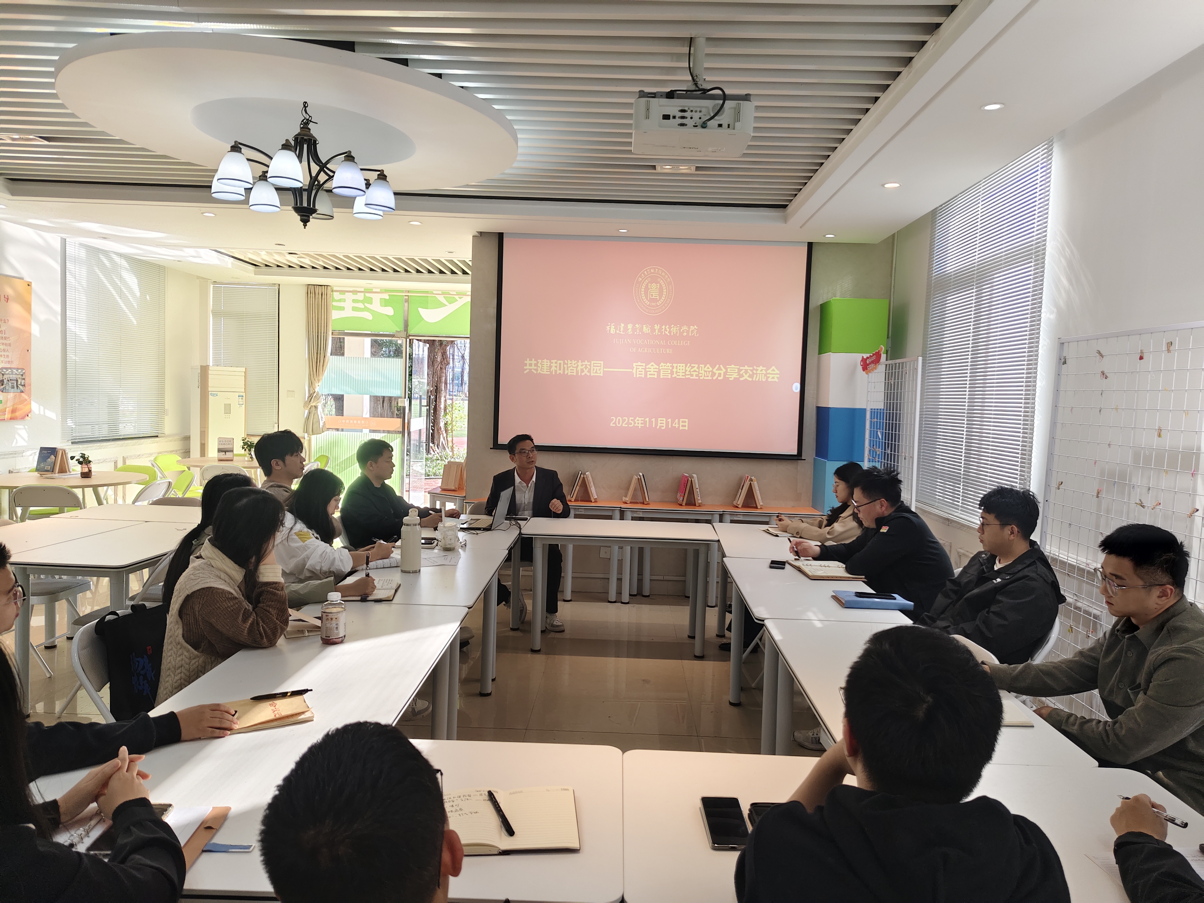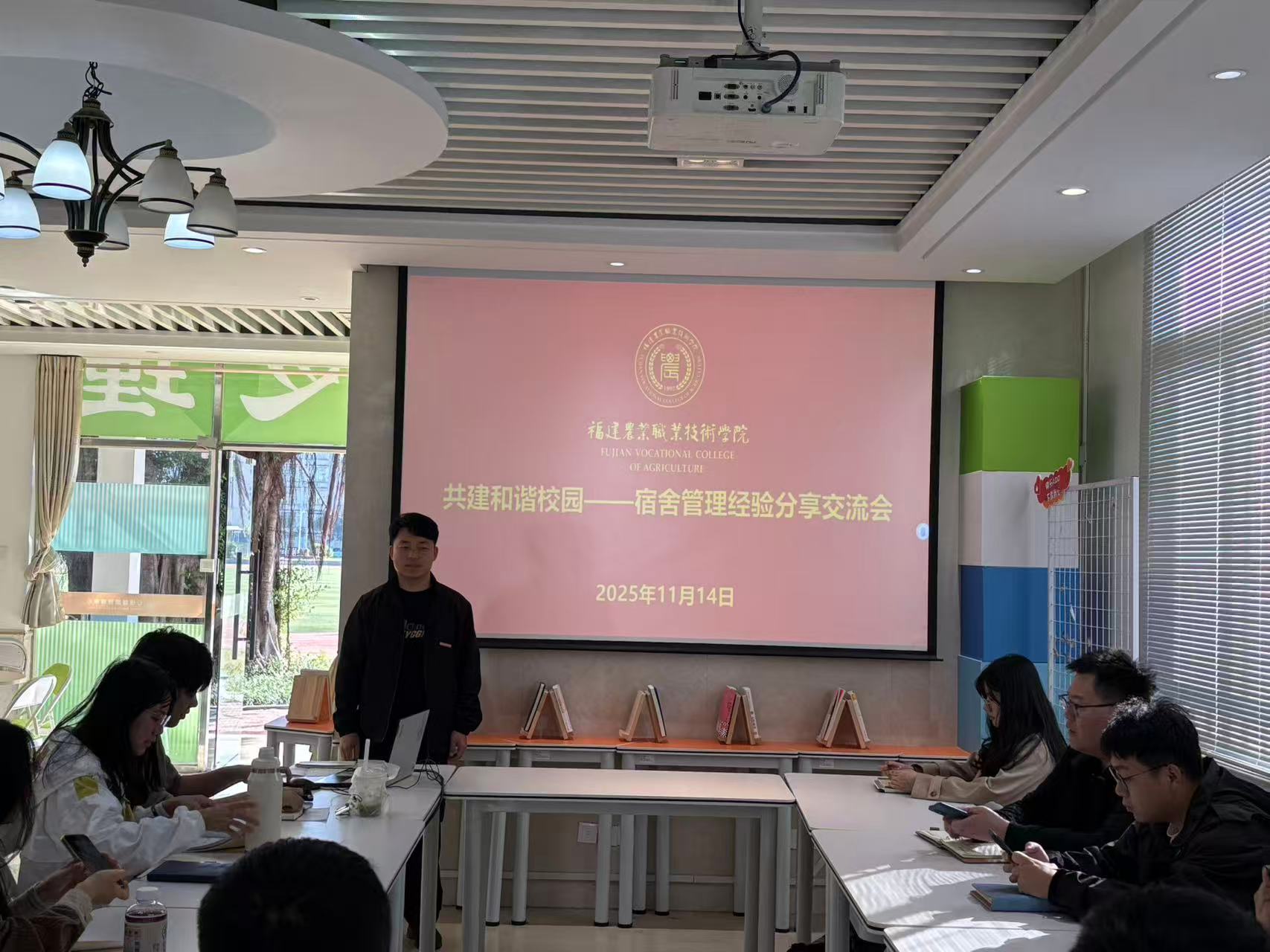 张泽坤老师从“宿舍生活的育人价值”切入,阐释了良好住宿环境在心理健康、学业发展、跨文化适应等方面的正向功能,用详实数据与鲜活案例展示现代农业技术学院宿舍管理成效,针对“00后”个性鲜明、现实社交弱、心理危机隐蔽等新考题,他提出“制度为纲、文化为魂、队伍为基、危机为警、智慧为翼”的“五维”协同机制。