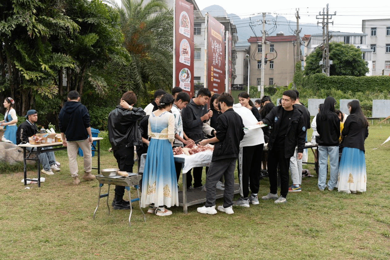 飘香的烟火气和师生们的欢声笑语肯定了志愿者们的辛勤劳动。活动前,由汉族和少数民族同学共同组成的志愿者团队共同采购民族特色食材、布置劳动现场,通过劳动搭建了各民族同学之间交流的桥梁,进一步增进各族同学的友谊。