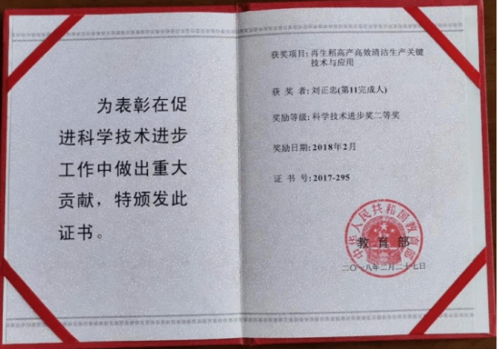 2018年2月被中华人民共和国教育部表彰为科学技术进步奖二等奖。