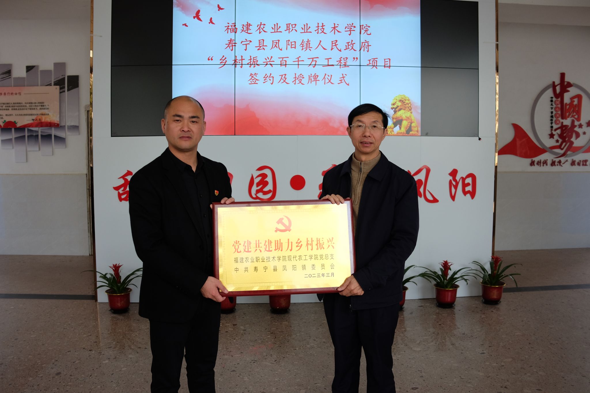 党委书记杨振坦与凤阳镇党委书记李木清签约并授牌