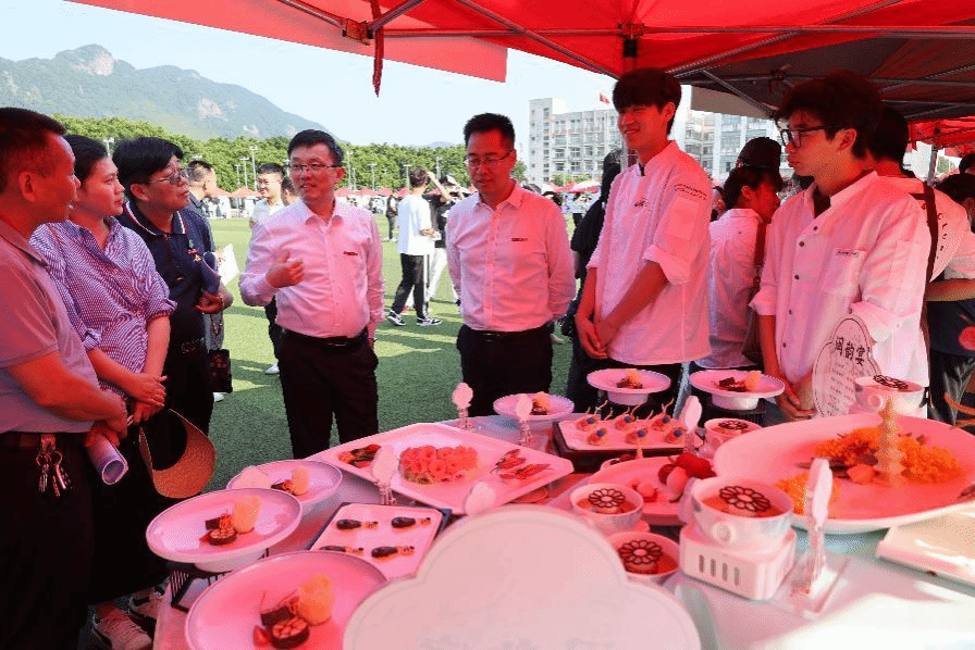“Beat365有福味”美食文化展活动活动以“非遗菜肴”宴席展览为核心亮点。梁赛赛、朱敬老师带领学生团队以福建地方戏曲“闽剧”为灵感,创新设计“闽韵宴”主题宴席,将闽剧服饰纹样、角色神韵融入菜品造型,从食材雕琢、火候把控到摆盘叙事,全方位展现闽菜非遗技艺的匠心传承。学生在制作中深刻体会到非遗技艺的厚重与匠人精神的坚守。宴席技能展示荣获2025年福建省职业院校职业技能大赛烹饪赛项二等奖。