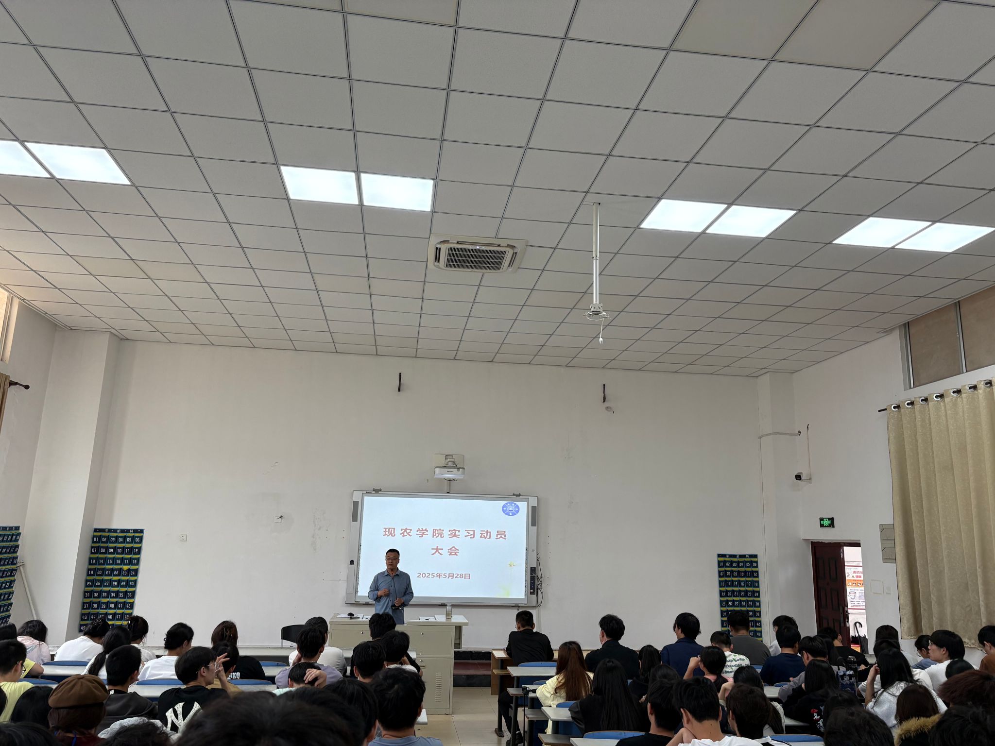 2025年5月28日下午,现代农业技术学院举办2026届毕业生实习动员大会。学院欧高政书记、陈文胜院长、冯冬林副院长、陈丰副院长,毕业班辅导员及580多位2026届毕业生参加了会议。