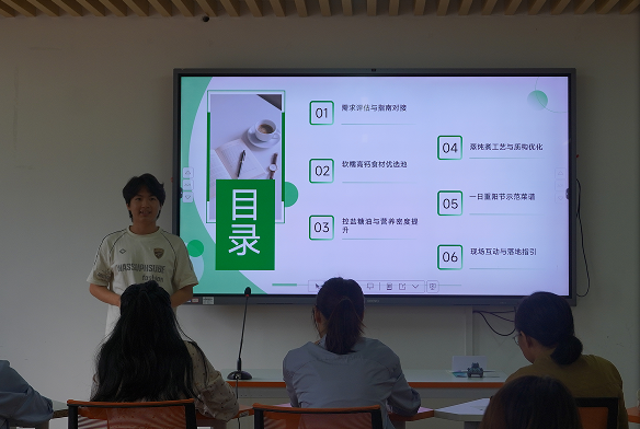 “传承中华美德・品味重阳文化”主题党日活动不仅在思想上引领每位党员孝亲敬老,行动上更发挥了我支部在食品科学领域的专业优势,将党建活动与专业实践深度融合。通过前期方案策划,布置任务,2025年10月31日下午,由教工第二党支部的专业老师担任评委,以学生党支部发展对象及积极分子为参赛对象,开展了“九九重阳・感恩敬老”老年人食膳食谱设计比赛。参赛学生围绕老年人的生理特点、营养需求和常见慢性病,进行了精心设计与论证。