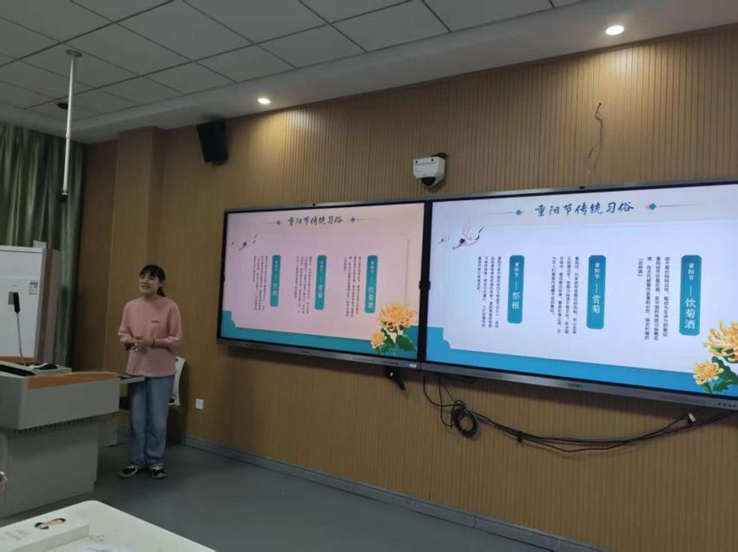2025年10月29日,主题党日活动以《重阳节的文化内涵与时代价值》微党课为开篇,由教工第二党支部书记陈婵讲授。从重阳节的历史源流、习俗演变讲起,生动阐述了登高祈福、秋游赏菊、佩插茱萸、饮宴祈寿等传统习俗背后所蕴含的祈福纳吉、敬畏自然、热爱生命的文化底蕴。