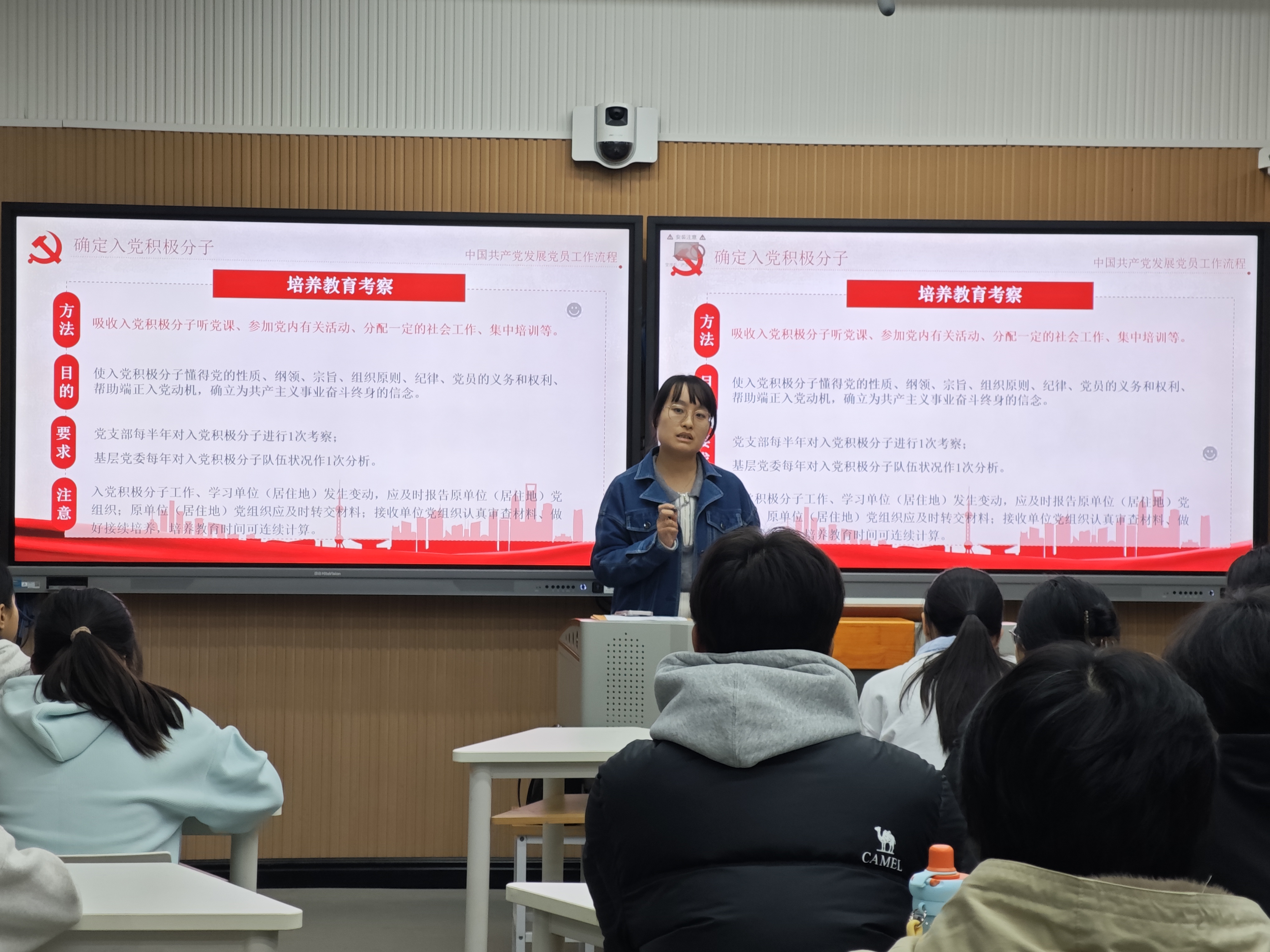 本次培训班紧扣”提高思想认识、增强党性意识、锤炼过硬本领“核心目标,精心设计课程体系,力求实现理论学习与党性锤炼的深度融合。培训聚焦党的二十届四中全会精神、党的性质宗旨、党的纪律的认识以及发展党员工作程序等核心内容,开设《学习贯彻党的二十届四中全会精神》《中国共产党党史脉络》《学农爱农知农助力乡村振兴》《发展党员的程序及入党文书写作》等专题党课7场。