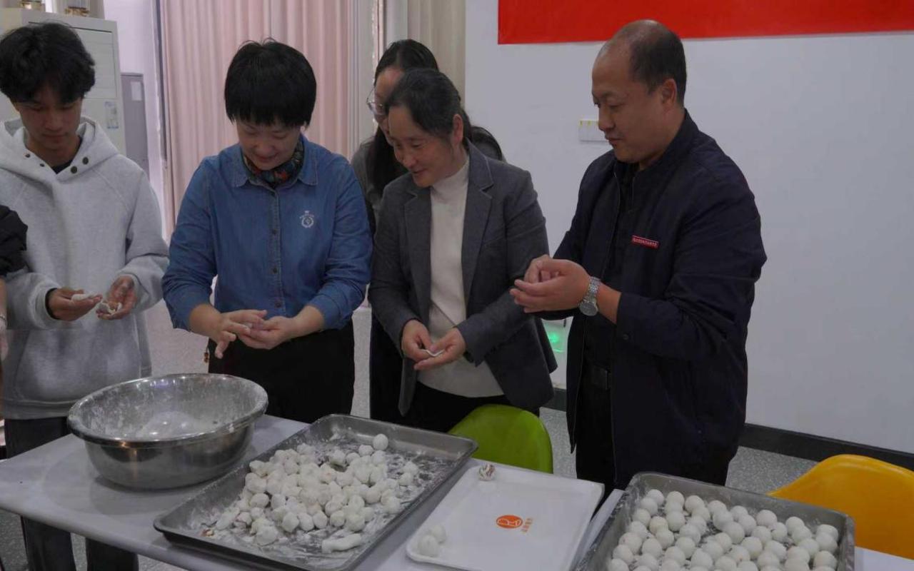 面粉飞扬间,是手艺的切磋;谈笑风生中,是情感的交融。空气中弥漫着馅料的香气与浓浓的暖意,一幅“师生共制团圆味,党建共绘同心圆”的生动画卷徐徐展开。