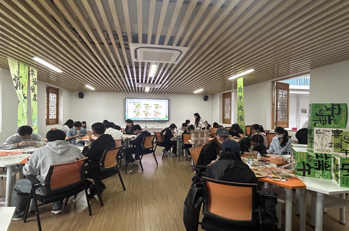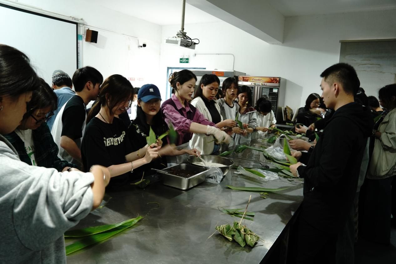 在“粽子制作体验”环节,师生们围坐在一起,在党支部老师的指导下学习包粽子技巧。折粽叶、填糯米、裹馅料、扎粽绳……一片片清香的粽叶、一粒粒晶莹的糯米,在大家的巧手中变成一个个饱满的粽子。活动现场欢声笑语,师生们互相交流家乡的端午习俗,在劳动协作中感受传统文化的温度。