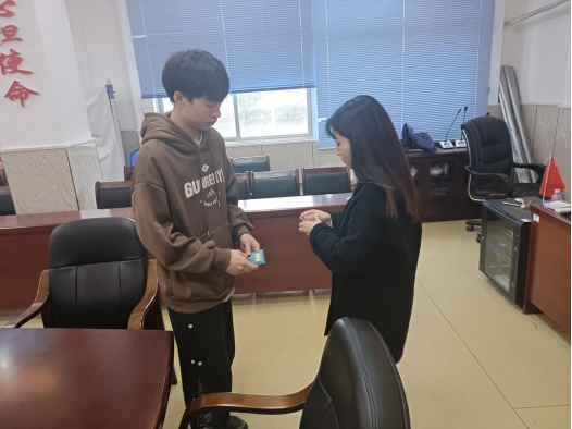 团总支书记胡彩艳老师宣布3名新团员名单,为新团员颁发团员证并佩戴团徽,带领新团员进行宣誓。她希望同学们珍惜青春年华,锐意进取,不骄不躁,树立正确的世界观、人生观、价值观;在今后的学习、生活中能按照团员标准严格要求自己,起带头作用,以身作则,从点滴做起,培养团队意识和合作精神;希望同学们记住今天的青春誓言,不要辜负父母的期望,不要辜负老师的期望,不要辜负社会和人民对大家的期望,为早日成为国家栋梁之材而发奋学习。