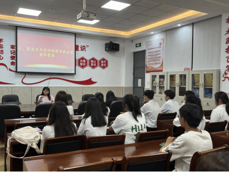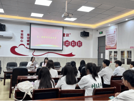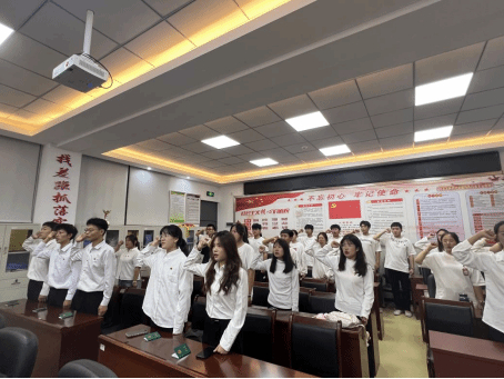 随后,全体新团员佩戴团徽环节,新团员们昂首挺胸,面对鲜艳的国旗以最洪亮的声音庄严宣誓,铿锵有力的声音,饱含着新团员的热情与自豪,这是他们对自己的承诺,对同学的承诺,对老师的承诺,更是对共青团的承诺,展现了新时代青年学生的精神风貌。