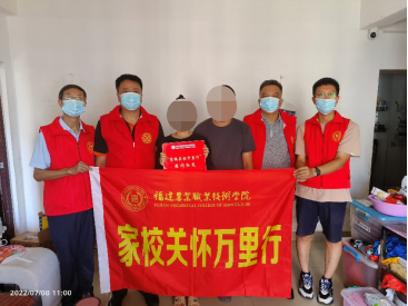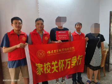 教育有情怀,家访有温暖。为加强家校沟通,推进资助工作的精确化和精细化,扎实推进“三全育人”工作体系,2022年7月8日至10日,严挺文副校长带领学工部陈晓波部长、现代农业工程学院党总支余勋信书记、辅导员黄琳翔前往莆田涵江区、厦门湖里区、漳州云霄县开展“家校关怀万里行”精准家访活动;实地了解贫困学生家庭情况,详细地向学生及家长宣传国家及学校的资助政策,鼓励学生要克服困难,不断提升自我,为后续实习就业打下良好基础。家访暖人心,共育促成长,通过此次家访,不仅给困难学生送去了关怀和温暖,也给予同学精神上的慰藉和鼓励。用脚步拉近彼此的距离,用温情传递彼此的爱。