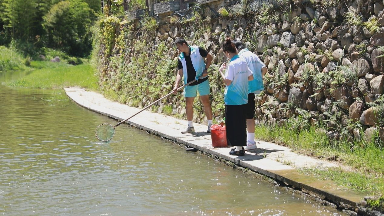 实践队员们在实地了解河道清理的技巧后,立即化身“碧水卫士”,投身到河道维护工作中。他们手持网兜、夹子,沿着河道清理水草、塑料袋、饮料瓶等垃圾,用实际行动还原溪流洁净。实践队还运用便携的水质检测设备,现场取样分析水温、PH值等关键指标,记录宝贵的基础数据,为评估旅游活动对水体的实际影响提供科学依据。“此次泰宁之行,让我感受到了这里良好的生态环境。在老师的带领下,我们参与了一些巡河护河的活动,让我深刻的认识到我们应该为守护绿水青山贡献一份力量。”实践队队长卢明亮感触地说道。队员们纷纷表示,将运用所学环境工程技术知识,深入分析调研结果,形成调研报告,为泰宁旅游与水环境的长效协调发展贡献青年智慧与方案。
