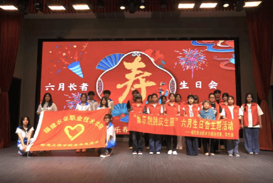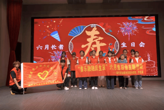 耆年同庆乐无边,六月生辰情相连。现代农业技术学院于6月11日组织青年志愿者走进福清市静馨嘉园敬老院,给6月过生日的老人们办了一场特别的生日派对。现场热闹又温馨,老人家们笑得合不拢嘴。