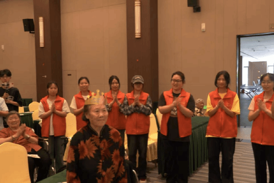志愿者带来丰富表演,一首《小美满》,唱出了对老人美好的祝愿;动感十足又优美的舞蹈《快乐崇拜》和《美丽中国》,展现了年轻的活力与风采;搞笑小品《排队》更是逗得大家前仰后合;最暖心的要数庆生环节,当"生日快乐"歌声响起时,有位爷爷偷偷抹了眼泪。