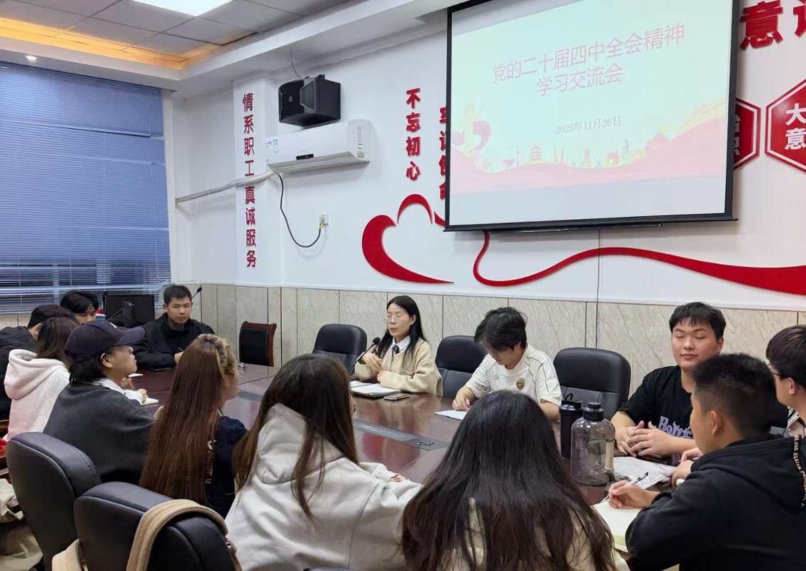 以思想伟力点燃奋斗激情,以全会精神激发青春担当。11月26日晚,现代农业技术学院团委在教学2号楼302会议室成功举办党的二十届四中全会精神学习交流会。学院团委书记吕焕老师、全体团学骨干及各团支部书记齐聚一堂,共同参与本次学习活动。