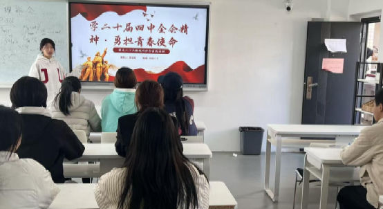 团委书记吕焕老师领学党的二十届四中全会精神,面向团员青年开展《以实干精神为“十五五”蓝图贡献青春力量》专题宣讲,介绍国家“十五五”时期经济社会发展的主要目标和发展主要任务,鼓励团员青年主动跳出“舒适区”,积极投身乡村振兴、科技创新等国家战略一线,在躬身实践中彰显青春价值,为国家发展蓝图注入青春动能。