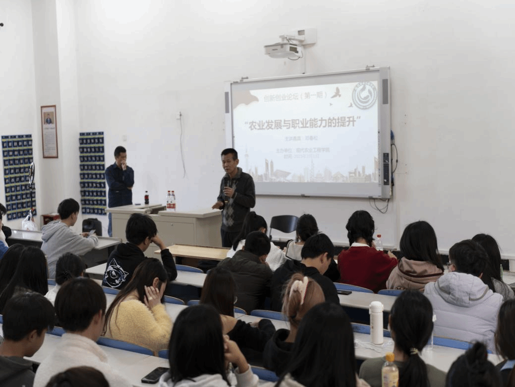 2023年3月1日下午,现代农业工程学院举行创新创业论坛第一期活动,特邀福州禾鑫农资有限公司董事长邓春松作主题为“农业发展与职业能力提升”的讲座。此次论坛采用线下+线上方式进行,由院长陈文胜主持。