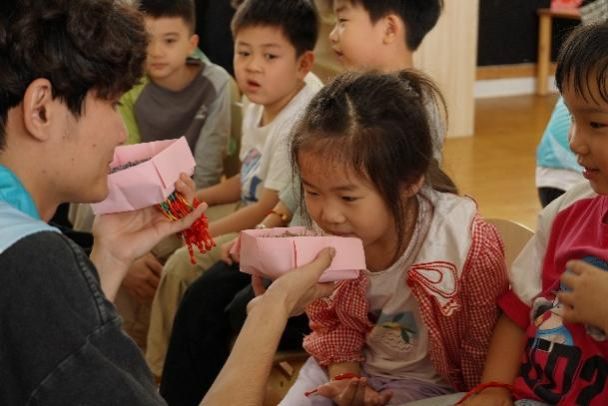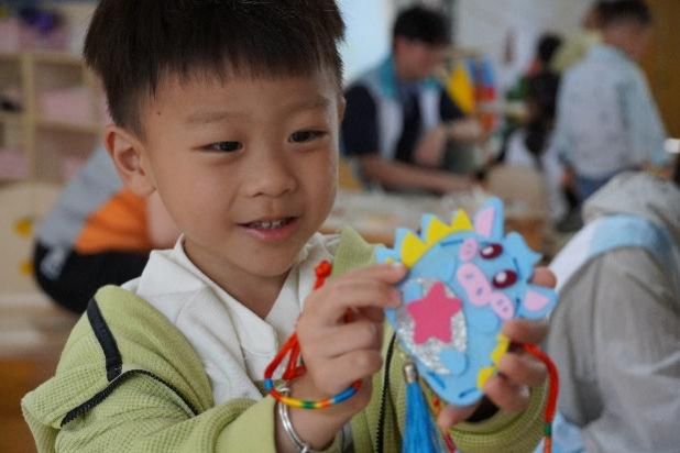 志愿者们就小班、中班、大班的小朋友们,精心设计了不同形式的知识讲解、课堂互动和手工制作内容。热情洋溢的《端午节童谣》手势舞吸引小朋友一同欢快舞动;有趣幽默的动画视频带领小朋友走进伟大爱国诗人屈原的世界;亲切温暖的课堂互动拉近了志愿者与小朋友们之间的距离,耐心细致的手工指导让教室成为小朋友们天马行空的创意殿堂,细心佩戴的五彩绳寄托着志愿者们对小朋友们的美好祝福。
