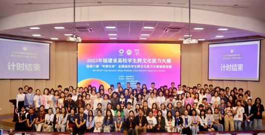 本次大赛由福建省教育厅主办,福建师范大学、上海外语教育出版社承办,福建省外国语文学会、福建省大学外语教学研究会、福州大学跨文化话语研究中心、福建师范大学翻译与国际传播研究中心提供学术支持。该项赛事被福建省教育厅列入省级大学生学科专业竞赛项目,大赛以“坚定文化自信,增进国际理解”为主题,为高校师生提供一个展示跨文化交流能力、交流跨文化教学经验的平台。大赛设置本科组和专科组,吸引了全省43支高校队伍参赛。