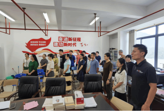 在林国土老师的带领下,全体教师面向《新时代教师职业行为十项准则》庄严宣誓。