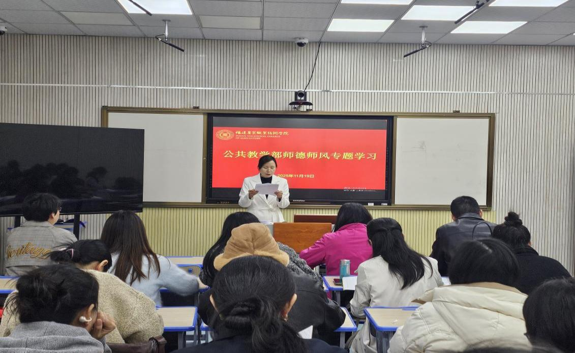2025年11月19日下午,公共教学部全体教师于创新楼录播室召开教职工大会,聚焦师德师风专题学习。会议由公共教学部主任陈永清主持。