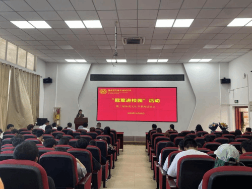 活动伊始,副院长侯志宏致欢迎辞。他首先对兰天辰一行的到来表示欢迎,并简要介绍了本次活动的主题和安排。他号召院常规训练运动队的队员们通过今天的交流讲座,深入地了解兰天辰同学的拼搏精神和向上力量,汲取宝贵的经验和智慧,在未来的竞技道路上继续勇往直前、不断超越自我。他希望通过本次活动,能够激励更多的学生投身到体育运动中来,为实现“健康中国”的目标贡献力量。