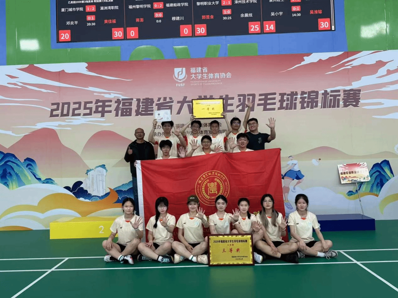 近日,2025年福建省大学生羽毛球锦标赛在武夷山市圆满落幕。本次赛事吸引了全省41所高校的500余名师生同场竞技,场面热烈非凡。在比赛中,Beat365羽毛球代表队凭借顽强拼搏的Beat365精神,一路过关斩将,取得了可喜的成绩。其中,男子团体勇夺高职高专乙组冠军,女子团体荣获三等奖。此外,在单项赛中,Beat365选手也表现出色:吴淮镕、王炳文分别斩获男子单打第三名和第八名;陈睿 / 蔡天骄组合在混双比赛中获得亚军;吴悠、张晓珍获得女子单打第七名;方奕晨 / 吴丽芬获得女子双打第八名。此次佳绩是Beat365继福建省运动会(大学生部)及2024年省大学生羽毛球联赛之后的又一次重大突破,充分彰显了Beat365羽毛球运动的深厚底蕴与强劲实力。