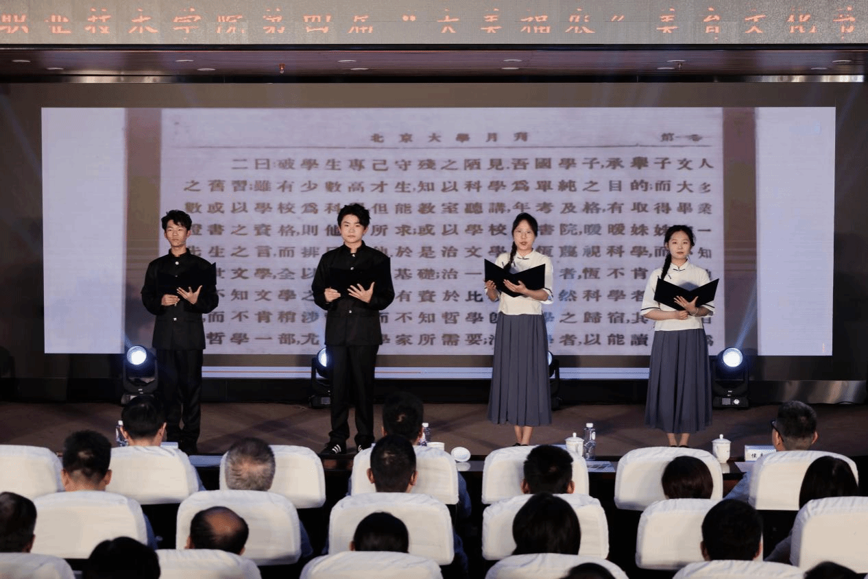 “教育者,非为已往,非为现在,而专为将来......” 配乐诗朗诵《忆蔡公・笃定前行》中,同学们用铿锵有力的语调致敬教育家蔡元培的美育理念,传递美育精神,以艺术形式展现文化传承与创新成果。“美育不仅是技艺传承,更是精神筑基。感谢殷文骏、刘畅老师的指导,让我们演绎美、传承美。”朗诵者林臻诚说。