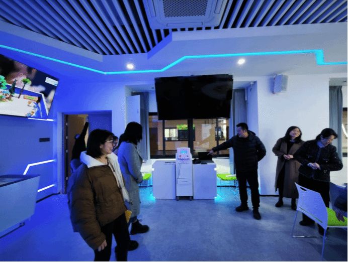 图为调研团队一行参观虚拟仿真实训设备