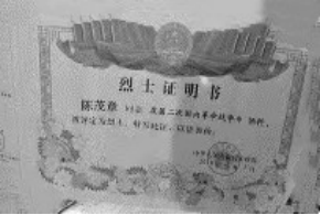 陈茂章(陈兴桂)烈士证明书 陈懋章(陈兴桂)塑像