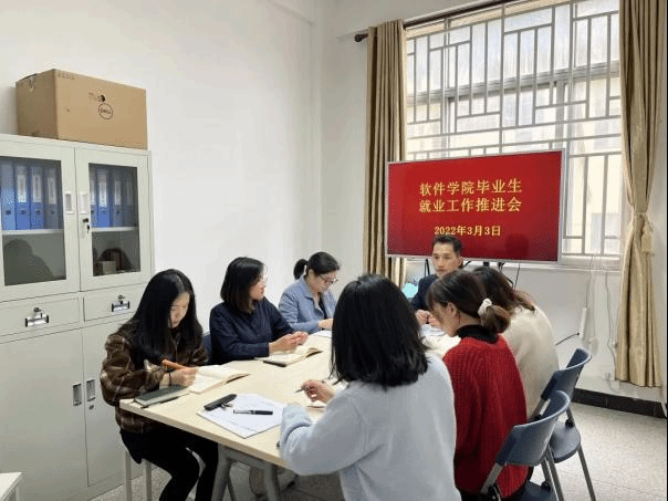 【软件学院】为做好软件学院2022届毕业生就业创业工作,提升毕业生就创业工作质量,落实学校相关毕业生就业工作方针要求,探讨毕业生就业的措施,推进毕业生就业工作的有序、平稳开展,2022年3月3日下午,在学院会议室,召开了2022届毕业生就业专题工作推进会。学院就业工作负责人、辅导员、就业专员、教员代表参加本次会议,会议由学生工作副院长吴恒春主持。
