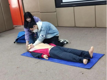 (学生正模拟心肺复苏的基本流程)