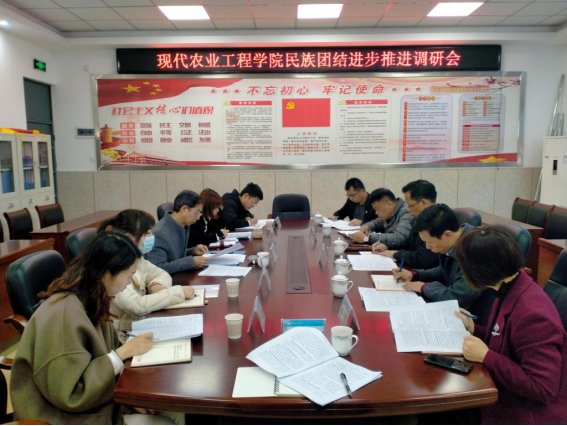 【现代农业工程学院】2022年3月8日上午,现代农业工程学院在教学楼302召开民族团结进步推进调研会,校党委副书记王振亮、宣传统战部部长詹其仙、学工部部长陈晓波、团委书记陈小华、宣传统战部科长郑祥正、安保处马永荣,以及学院党总支书记余勋信、全体辅导员参加会议。