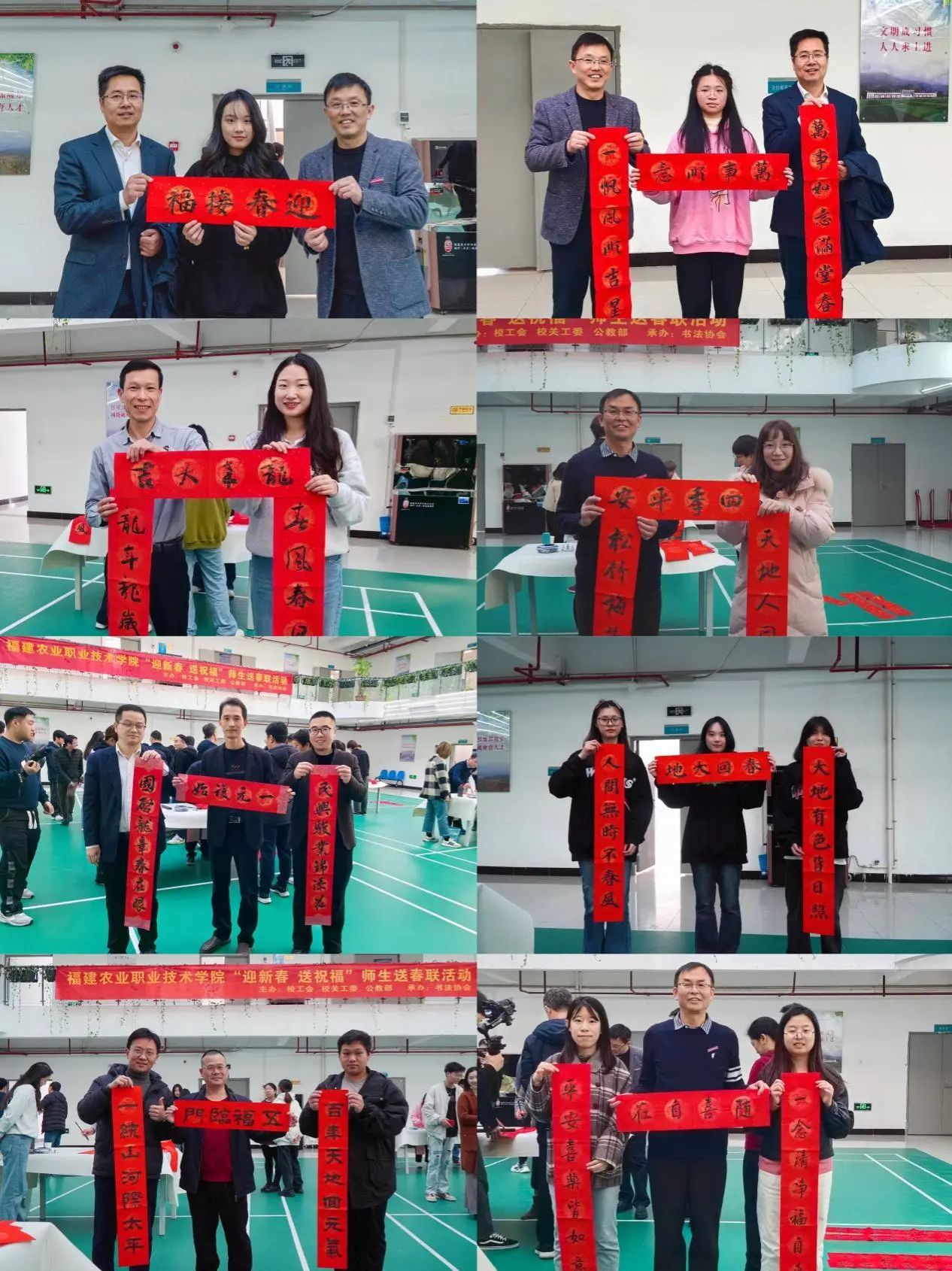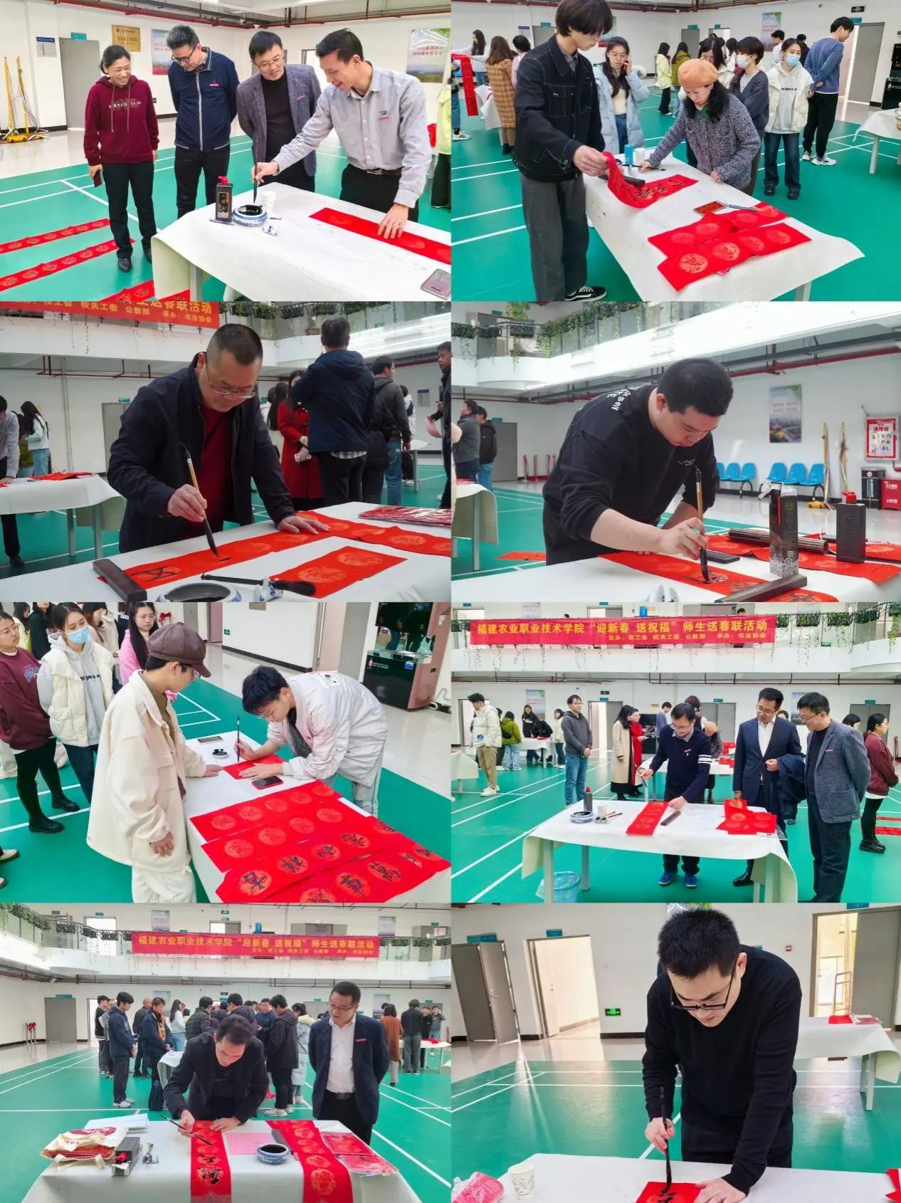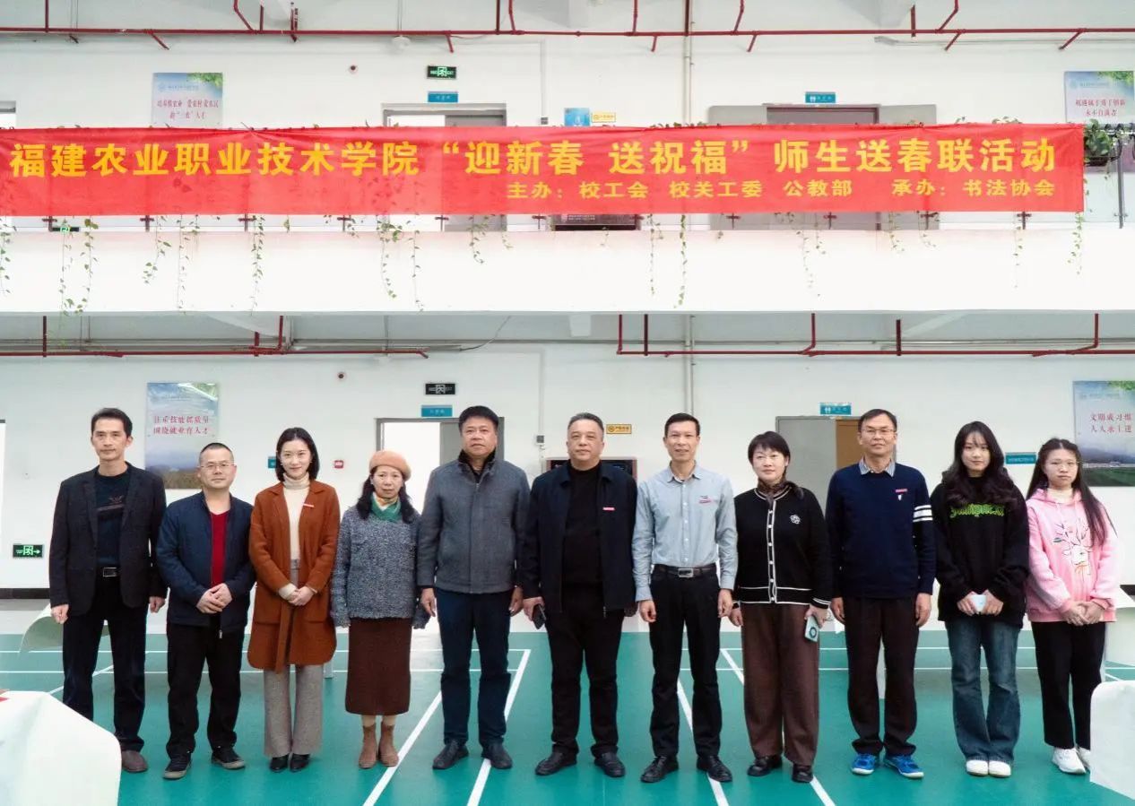 1月17日下午,由校工会、 校关工委、公教部联合主办,校书法协会承办的“迎新春、送祝福”师生送春联活动在闽台楼五楼羽毛球场举行。