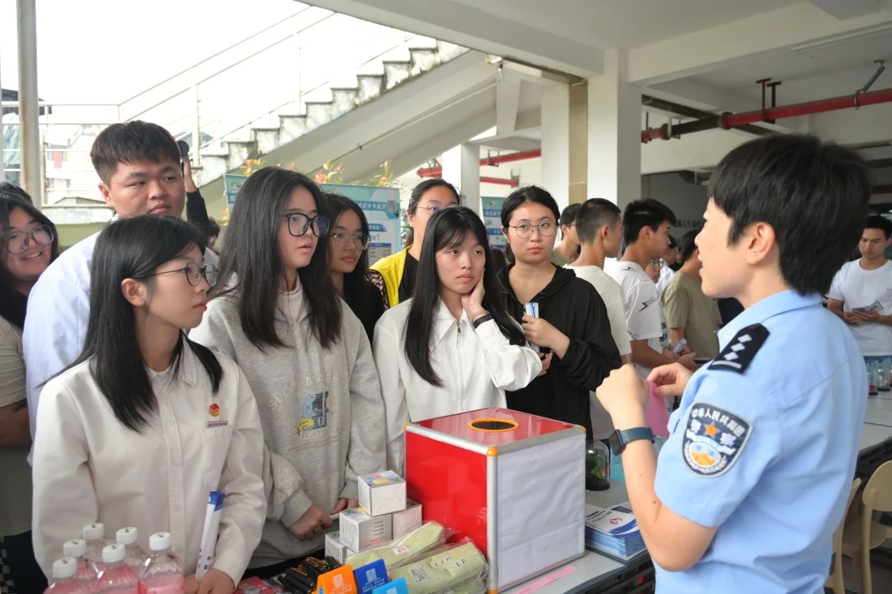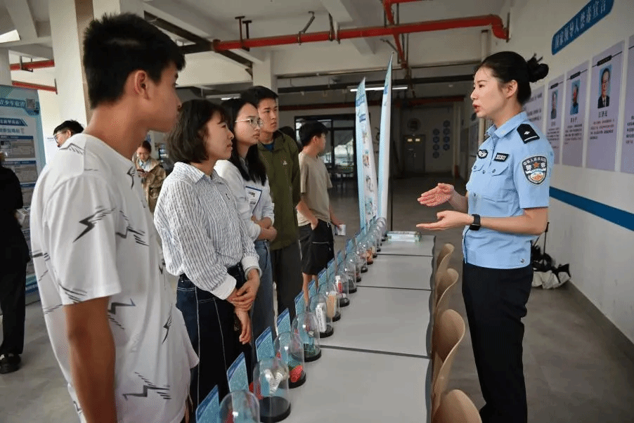 在禁毒宣教长廊,通过禁毒知识展板、仿真毒品展示、分发禁毒宣传手册、知识问答等方式,民警们为师生们详细介绍了毒品的种类和特点,让大家进一步了解毒品的危害,增强师生的禁毒意识,提高自我保护能力。