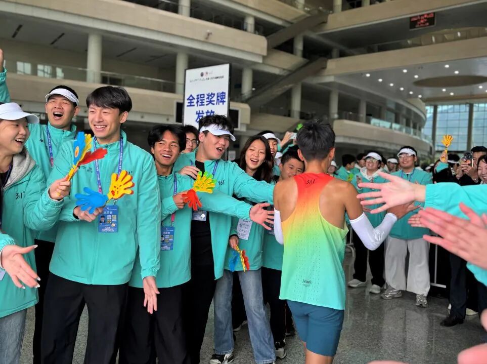呐喊如潮,热情似火。在马拉松的终点处,志愿者们以小组为列,为每一位抵达的跑者挂上奖牌、送上掌声。“太棒了”“恭喜完赛”呐喊声此起彼伏,一张张热情洋溢的笑脸、一声声铿锵有力的助威,让运动员们感受到福州满满暖意,展现了我校志愿者们的蓬勃朝气。
