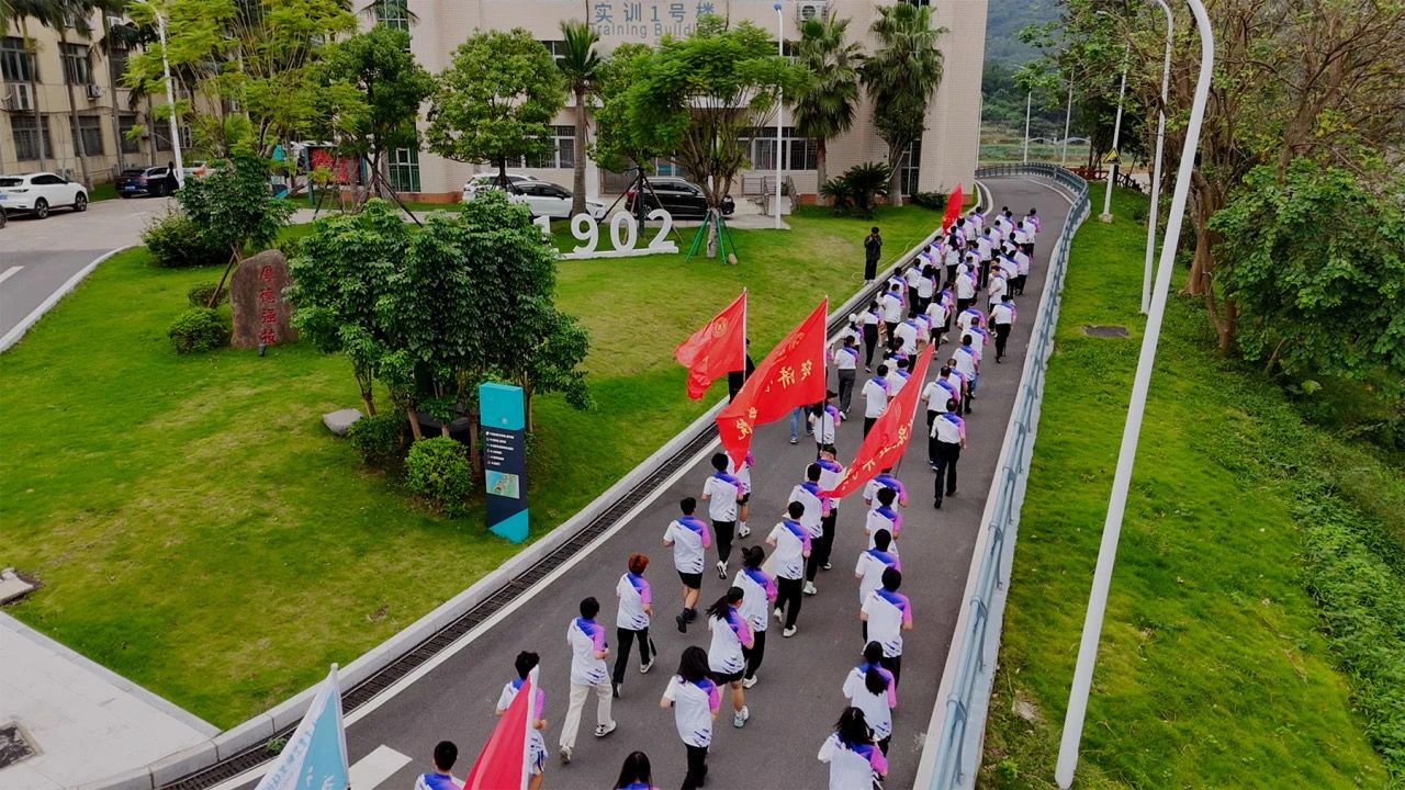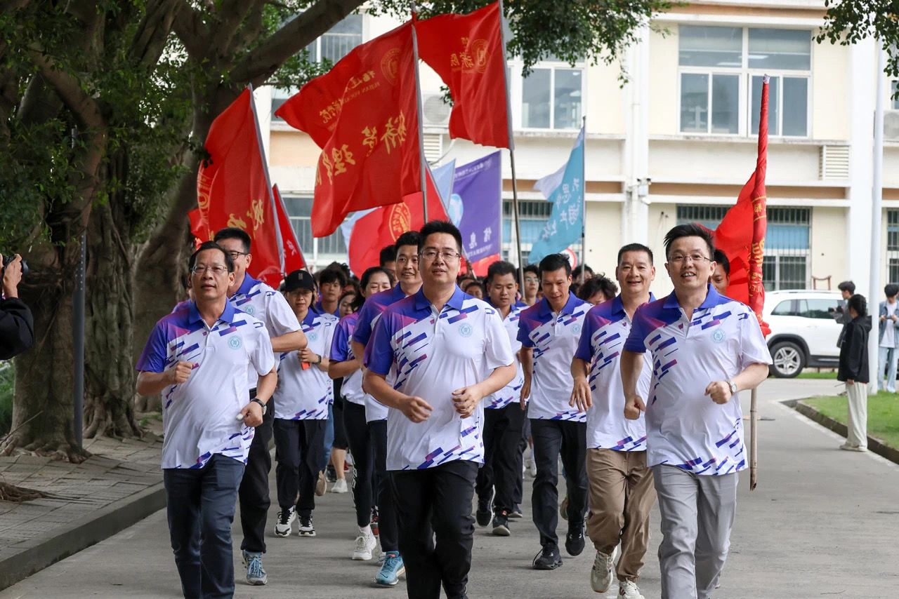 在杨振坦书记的领跑下,学院体育文化节的第一项活动,师生环校跑开始了。参与活动的全体师生以耕读广场为起始点,沿着攻关桥,经实训楼、健康步道、闽台楼、创新楼后沿校田径场环跑一周、穿过教学二号楼、林荫道,最后回到耕读广场,全程两公里,整个过程中师生们精神昂扬,队伍犹如一条矫健的游龙在校园内穿梭,蔚为壮观。