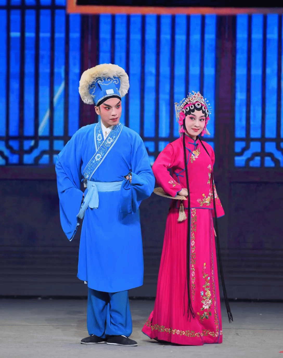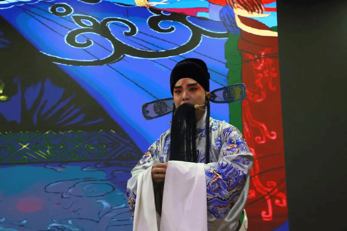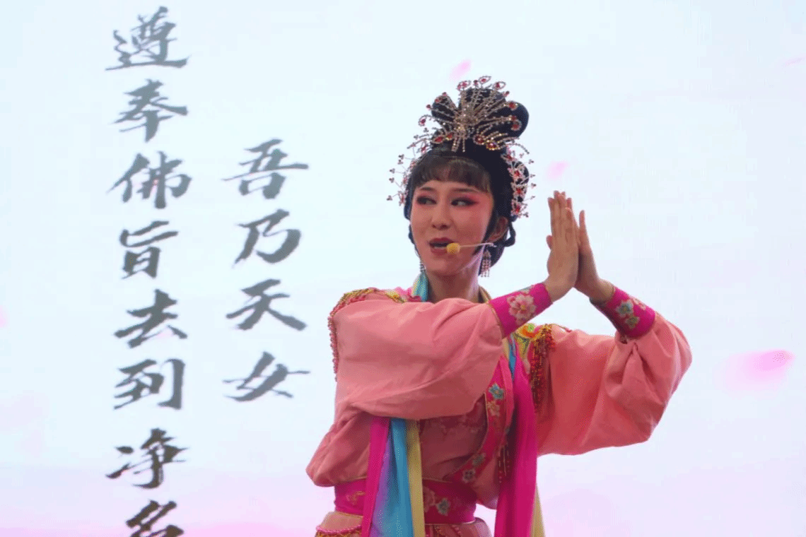 闽剧又称福州戏,是现存惟一用福州方言演唱、念白的戏曲剧种,是第一批国家非物质文化遗产。来自福建省实验闽剧院的青年演员们为我校师生带来了一场别开生面的戏曲盛宴。演出中,"非遗进校园"项目负责人林蓓珑老师结合图文、戏曲动画等形式,用通俗易懂的方式,为现场同学们普及了闽剧的基础知识、妆造过程并邀请同学们上台试穿戏服,学习闽剧唱腔。随后,青年演员们演绎了《辕门斩子》《天女散花》《盘答》等经典闽剧片段。
