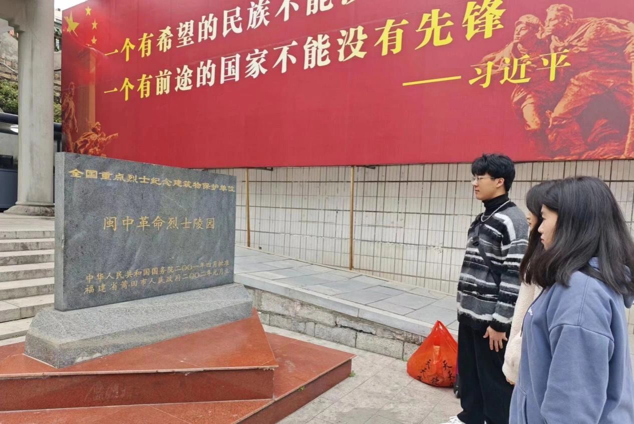 2月22日,实践团队来到龙脊山烈士陵园。龙脊山烈士陵园,又名闽中革命烈士陵园,位于福建省莆田市区南部,以莆田县革命烈士纪念碑为主体,包括闽中革命史纪念馆及凉亭假山等附属建筑物,这是莆田市区首选的爱国主义教育基地。走进大门,登上台阶,便到了巍然耸立在山顶的烈士纪念碑。纪念碑为革命牺牲的千百名烈士兴建,记述着闽中人民在党的领导下为了革命事业前仆后继、顽强斗争的奋斗历程和先辈们的不朽功绩。纪念碑北面是革命烈士碑亭,忠烈碑亭以及杨烈士持平墓道。其记载的事迹让后人铭记这些为民族独立、人民解放抛头颅、洒热血的兴化英雄儿女,缅怀他们的光辉业绩,学习他们的高贵品质和革命精神。纪念馆前言大厅形象地再现出闽中革命的历史,将700余张图片资料和100余件文物资料,运用现代化的科技手段,全面而生动地展现中共闽中地方组织为了人民翻身做主人和新中国的建立抛头颅、洒热血的悲壮斗争事迹。使纪念馆在弘扬优秀传统文化,对广大青少年进行闽中革命史和乡情教育,推进爱国主义教育方面起到了积极的作用,让实践团队感受颇深。