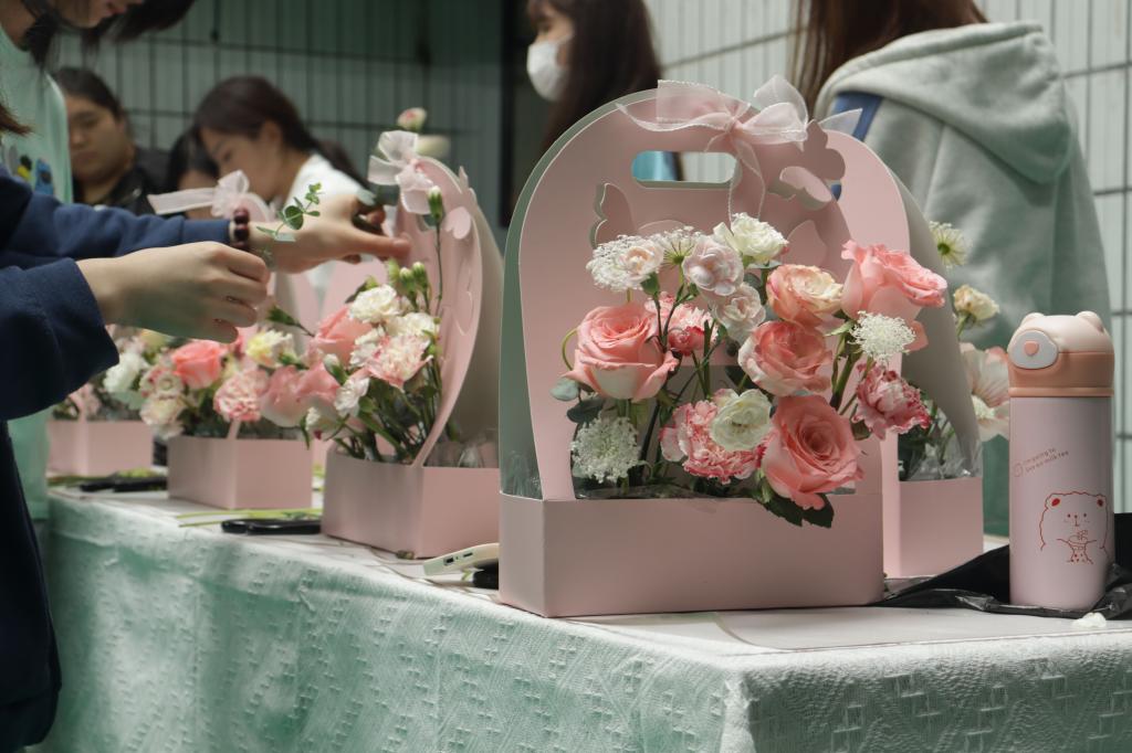 “一花一世界”,近年来,学院致力构建“以美育人”新格局,充分利用学校特色专业,开展一系列喜闻乐见的美育活动,通过花艺体验,学生在享受插花艺术乐趣的同时,培养了知美、爱美的生活情趣。