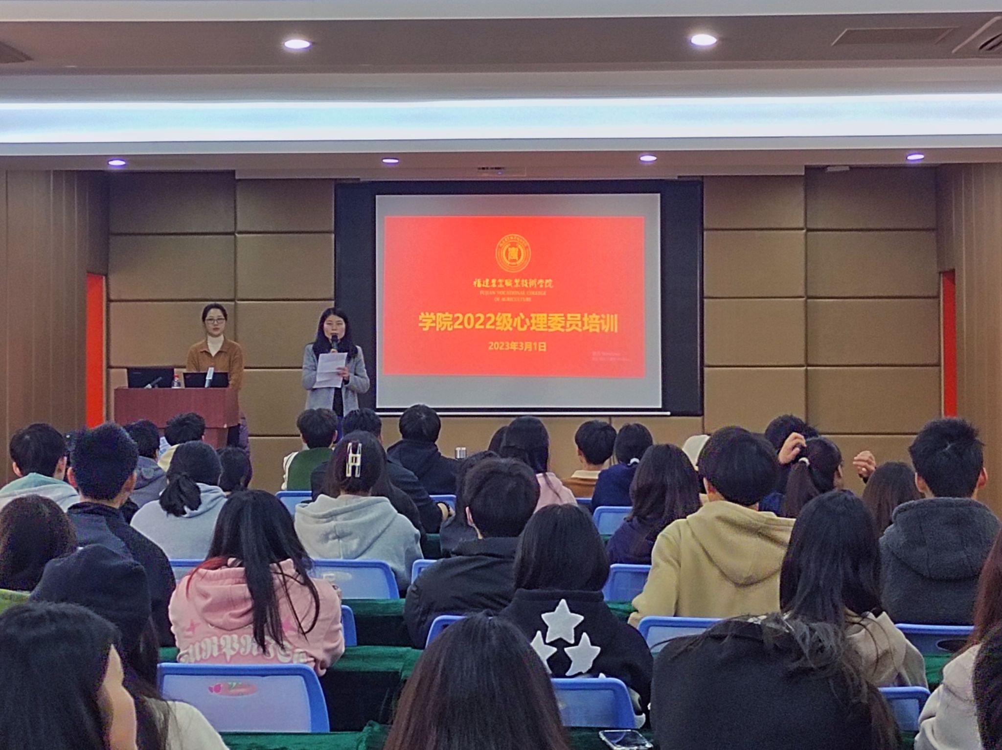 3月1日,由学生工作部主办的2022级班级心理委员培训班在创业大讲堂举行。心理健康教育中心专职教师老师及2022级各班心理委员120余人参加此次培训。培训仪式由学生工作部心理健康教育中心曾芳主任主持。
