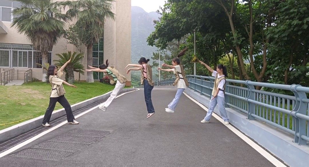 图为学生参加杯子舞比赛活动