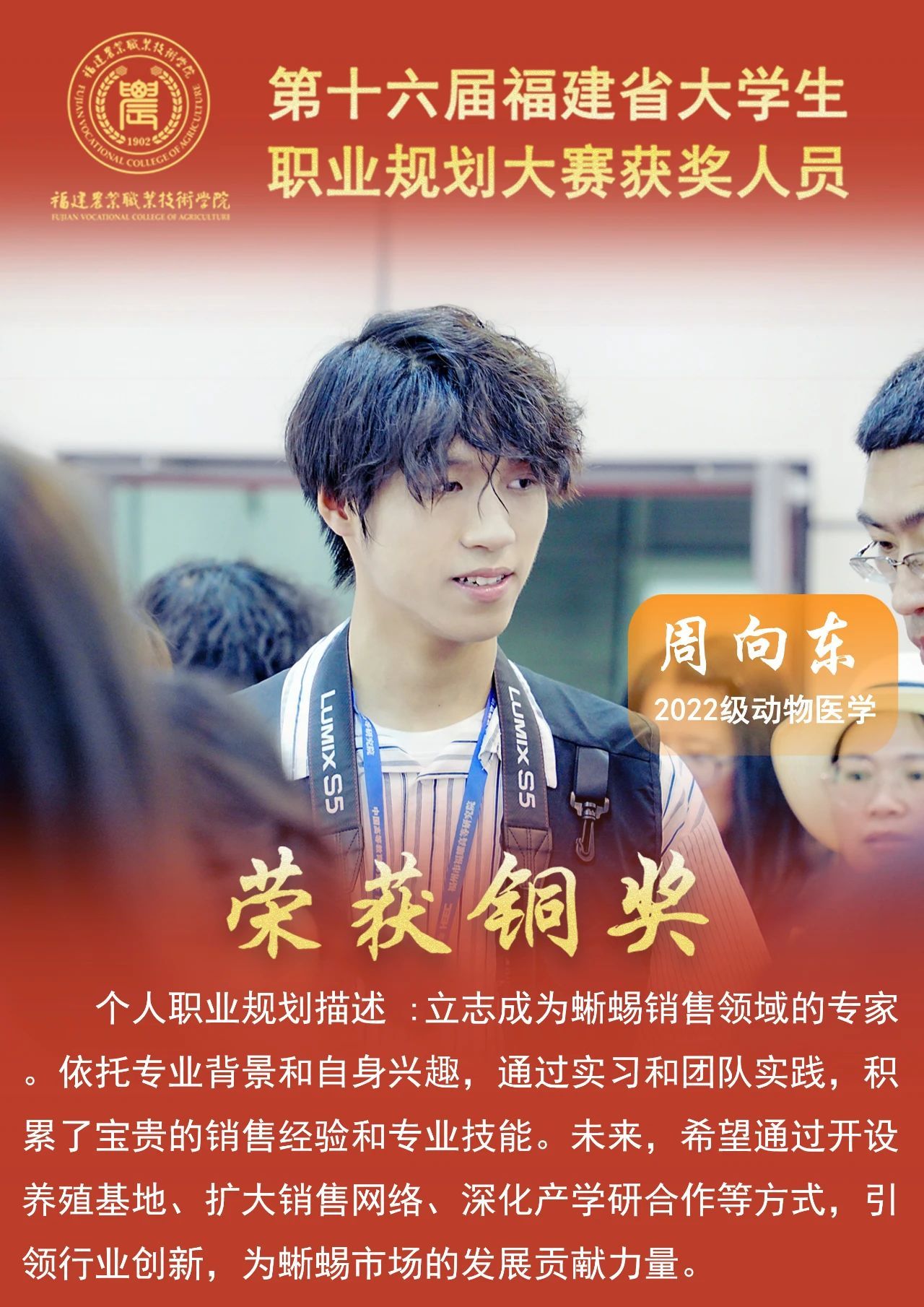 据悉,首届全国大学生职业规划大赛以“筑梦青春志在四方,规划启航职引未来”为主题,由教育部和上海市人民政府共同主办,采用校赛、省赛、全国总决赛三级赛制。第十六届福建省大学生职业规划大赛是首届全国大学生职业生涯规划大赛福建省选拔赛,共有86所高校302位学生和59位教师入围省级预赛。省教育厅组织开展省级预赛网评和举办现场总决赛,最终决出成长赛道、就业赛道和教学赛道的金奖、银奖、铜奖和优秀奖,并评选出优秀指导教师奖和优秀组织奖。