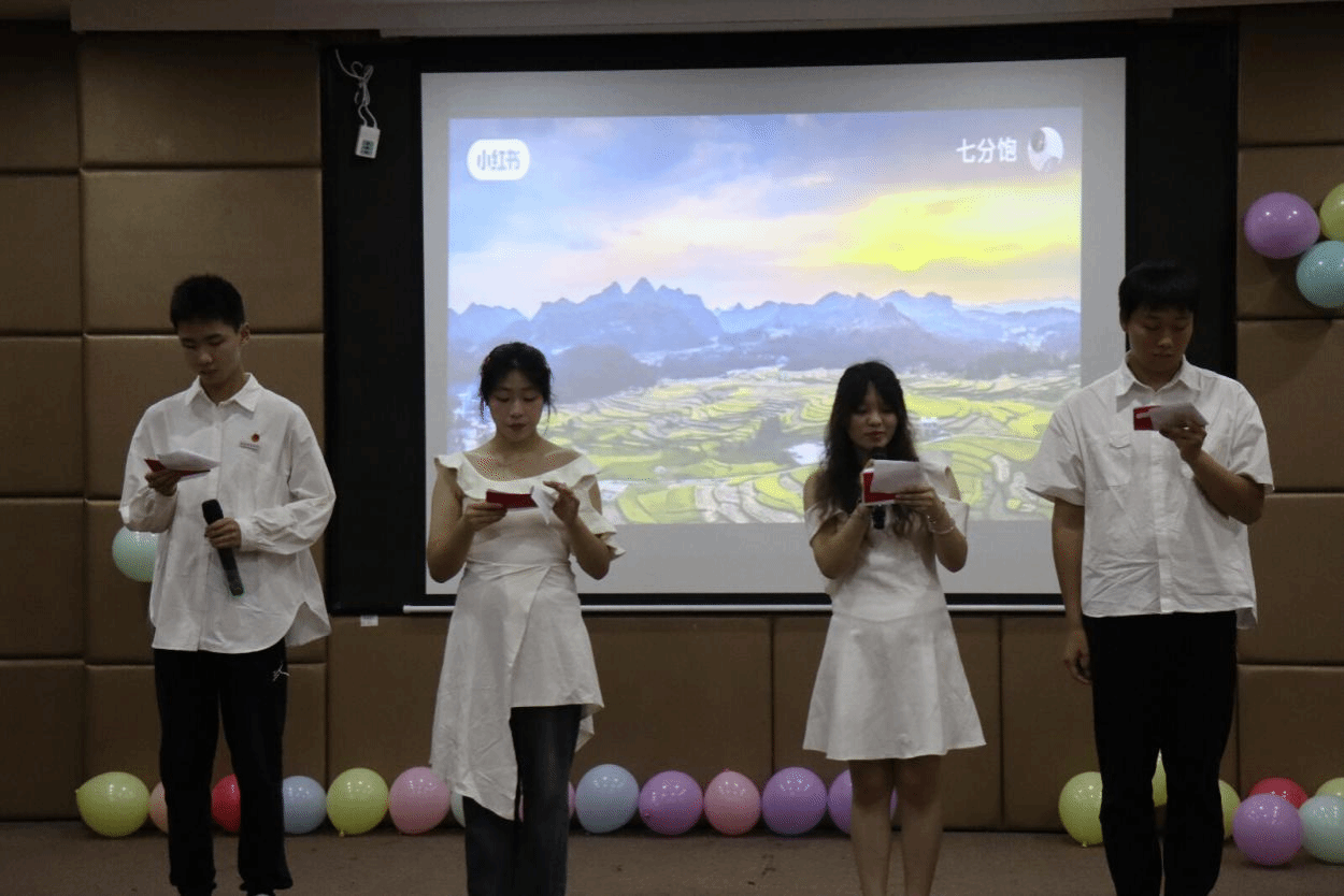 凤凰花开,离歌响起。2024年6月13日晚上,经济管理学院在相思岭校区举办“梦想同起航,共绘新篇章”送旧联欢会,辅导员代表、2022级的学生骨干以及2023级的学弟学妹们共同参加了此次精彩的送旧联欢会。一首《暖暖》轻松愉悦的拉开了联欢会的序幕,随后舞蹈社带来的舞蹈《Bubble》《Feel Special》《Sheesh》充满青春活力,点燃了全场的热情;小品《校园不容欺凌》将社会现象与网络热梗相结合,幽默搞笑的同时,拒绝校园欺凌的观念也深入人心;...